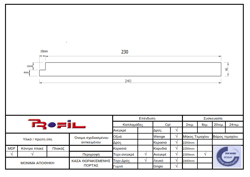 Το μήκος της βέργας είναι 2300mm & 2440mm, ενώ επίσης παράγεται σε τρεις τύπους πατούρας.